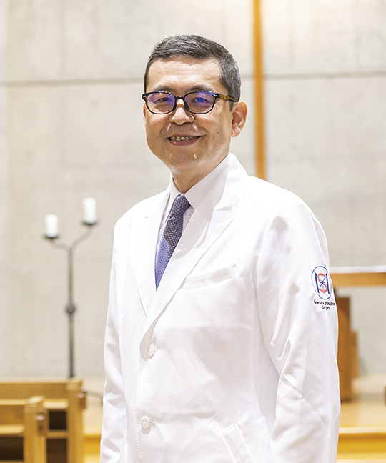 診療においては、それぞれが高い専門性を持ったメンバーからなるチーム医療を目指しています。精度の高い診断に基づく外科治療、放射線治療、薬物療法はもちろんのこと、整容性に優れた乳房再建、妊孕(にんよう)性温存、がんゲノム診断、遺伝性乳がんの管理、QOLを重視した転移乳がんの治療、緩和ケアなどを実践しています。そのためには、形成外科、産科婦人科、腫瘍内科、緩和ケア科、放射線診断ならびに治療科、病理診断科、遺伝診療部など関連各科・部署と協力が欠かせません。カンファレンスなどを通じ、患者さん一人一人にあった個別化医療を実現し、患者さんの高い満足度を目指しています。おかげさまで所在地の神奈川県川崎市のみならず、横浜市、東京都、さらには全国から多くの患者さんに来ていただいている実績があり、聖マリアンナ医科大学病院での乳がん症例に対する年間手術件数、七百から八百例は全国の施設の中でも常にトップクラスです。