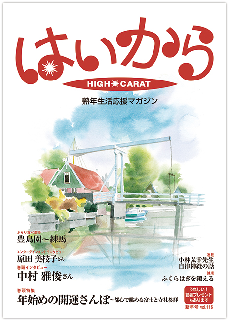 巻頭インタビュー/中村雅俊さん巻頭特集/年始めの開運さんぽ~都心で眺める富士と寺社参拝ぶらり食べ散歩/豊島園~練馬健康特集/ふくらはぎを鍛えるエンタメインタビュー/原田美枝子さん