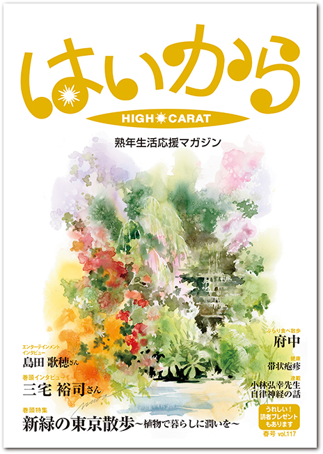 巻頭インタビュー/三宅裕司さん巻頭特集/新緑の東京散歩~植物で暮らしに潤いを~ぶらり食べ散歩/府中健康特集/帯状疱疹エンタメインタビュー/島田歌穂さん